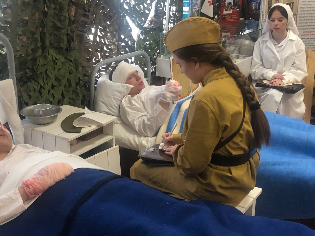 Накануне в актовом зале Алапаевской городской больницы студенты и преподаватели Алапаевского центра медицинского образования Свердловского областного медицинского колледжа (АЦМ СОМК) развернули интерактивную музейную выставку-экспозицию «Эвакогоспиталь».