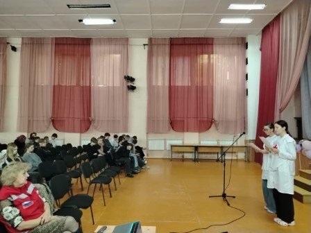- инструктор по первой помощи волонтеров-медиков Рыжакова Нина Валерьевна, студенты 1 и 4 курса Голдобина Ольга и Преснушкина Дарья рассказали учащимся СОШ № 22 как оказывать первую помощь пострадавшему без сознания