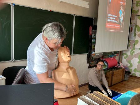 - преподаватель Махт Наталья Александровна показала учащимся СОШ № 24 как не растеряться и оказать первую помощи пострадавшему без сознания.