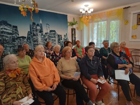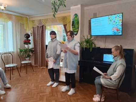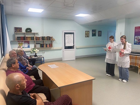 - для отдыхающих отделения дневного пребывания дома "Ветеран" студенты гр.401Ф специальности ЛД под руководством преподавателя Павловой И.В. провели беседы по вопросам льготного обеспечения лекарственными средствами и особенностях питания при гипертонической болезни. По итогу беседы студенты ответили на вопросы слушателей
