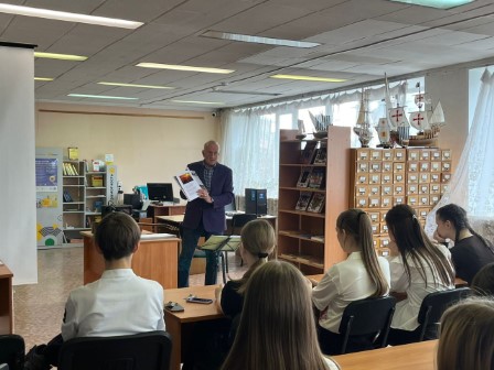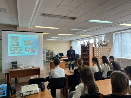 На встрече с Валерием Ивановичем обучающиеся услышали историю о матери, Анне Степановне Поповой, участнице Великой Отечественной войны, сестре милосердия, авторе книг «Память сердец» и «Поезд милосердия».