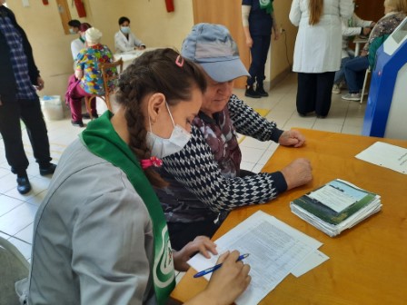 Студенты приглашали уже проголосовавших людей пройти диспансеризацию в Единый день диспансеризации, объявленный в ГАУЗ СО «Сухоложская РБ».