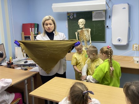 Федорова Анна Николаевна продемонстрировала мастер-класс по способам ухода за зубами, подчеркивая важность гигиены полости рта после каждого приёма пищи, особенно содержащей сахар или кислоты. Под ее руководством дети самостоятельно попробовали чистить зубы на специальном фантоме.