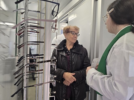 С тёплым приветствием обратилась к коллегам директор Свердловского областного медицинского колледжа, председатель регионального Красного Креста Ирина Анатольевна ЛЁВИНА. Именно благодаря Красному Кресту ветераны не только прошли бесплатное обследование зрения на современном оборудовании мобильного офтальмологического комплекса, но и получили ценные подарки – качественные очки по индивидуальным рецептам, изготовленные для них под руководством опытнейшего Антона ДЯТЛОВА – выпускника Свердловского областного медицинского колледжа, в настоящее время заведующего передвижным офтальмологическим комплексом СОМК.