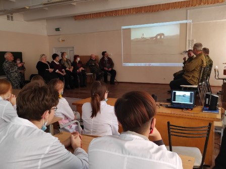На встречу со студентами пришли боевые офицеры, непосредственные участники боевых конфликтов из Союза ветеранов боевых действий и лично его председатель А.А.Кокшаров, представители Комитета солдатских матерей. Они поделились с ребятами своими воспоминаниями, впечатлениями о тех грозных событиях. Ветераны боевых действий рассказывали интересные истории, которые навсегда оставили след в их памяти: о героических поступках товарищей, прикрывавших своим телом гранату, о санинструкторах, которые в полевых условиях оказывали своим товарищам первую медицинскую помощь, спасая жизни совсем юных парней. На встрече также присутствовала мама Героя России Игоря Ржавитина Галина Тимофеевна. Ее призыв к мирному взаимодействию и межнациональной дружбе народов никого не оставил равнодушным. Студентки не смогли сдержать слез, когда Галина Тимофеевна делилась материнской болью от потери сына…
